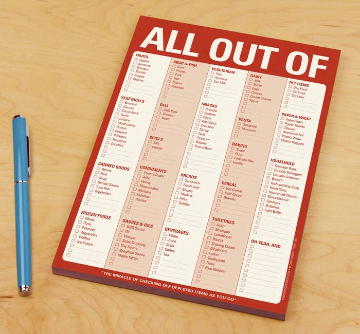 A grocery list notepad for people who neglect to buy eggs, milk, and pretty much every other important thing.