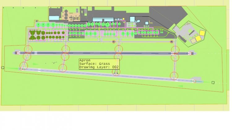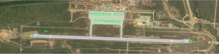 Спутниковый снимок был взят как шаблон для конфигурации перрона,рулежных дорожек по перрону и распределения ландкласса.