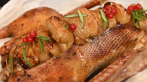 Гусь с мочеными яблоками, капустой и брусникой. Пастуший пирог