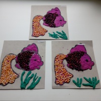 Материалы: белый картон размером 10 на 10, пластилин, муляжи