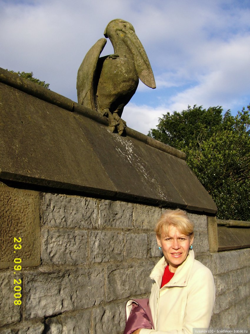 Стены вокруг замка украшены разными животными и птицами.