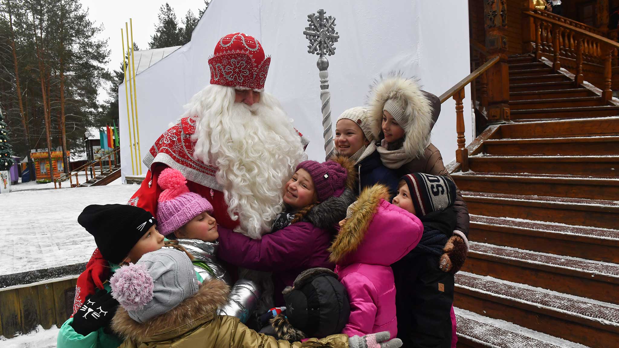 Поздравляют Деда Мороза и ребята: хозяин приглашает маленьких гостей в свою вотчину, проводит экскурсию по усадьбе, водит с ними хоровод, а вечером все вместе смотрят праздничный салют.