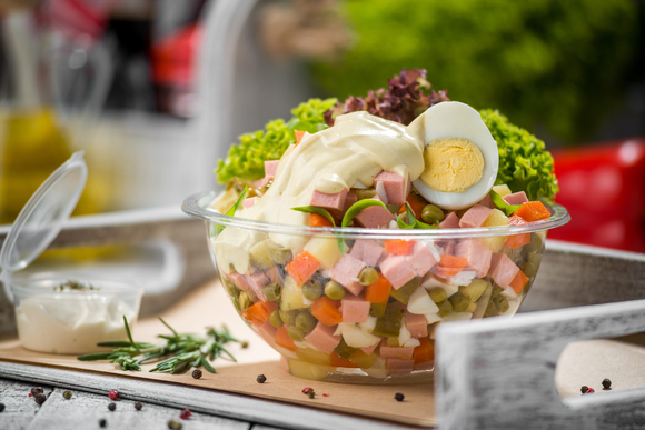 Всеми любимый салат оливье чаще всего заправляют майонезом. Этот соус используют для маринования и запекания мяса. Значит, понадобится упаковка побольше. Покупайте заранее — майонез хранится долго.